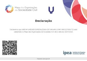 O Mapa OSC é uma plataforma nacional que reúne informações oficiais sobre entidades do terceiro setor em todo o país, com base em dados públicos. A obtenção da Declaração de Cadastro posiciona a UNECAR como uma organização transparente, confiável e preparada para ampliar seu impacto social.