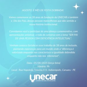 Vamos comemorar os 38 anos de fundação da UNECAR e também o Dia dos Pais, dessas pessoas maravilhosas que dão sentido à nossa história institucional.